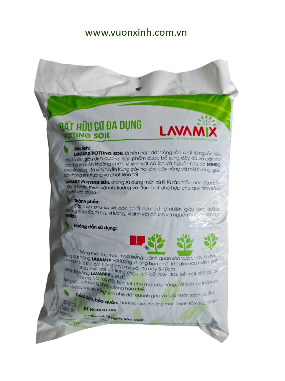 Lavamix Potting soil không sử dụng nguyên liệu mùn xử lý từ rác thải, không tồn dư kim loại nặng, đảm bảo đặc tính thân thiện với môi trường, phù hợp cho quy trình trồng rau hữu cơ, rau sạch.