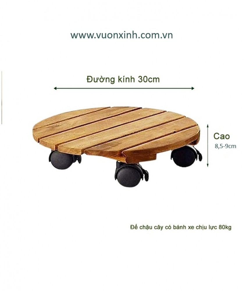 Đế gỗ Tròn lót chậu cây có bánh xe 30cm